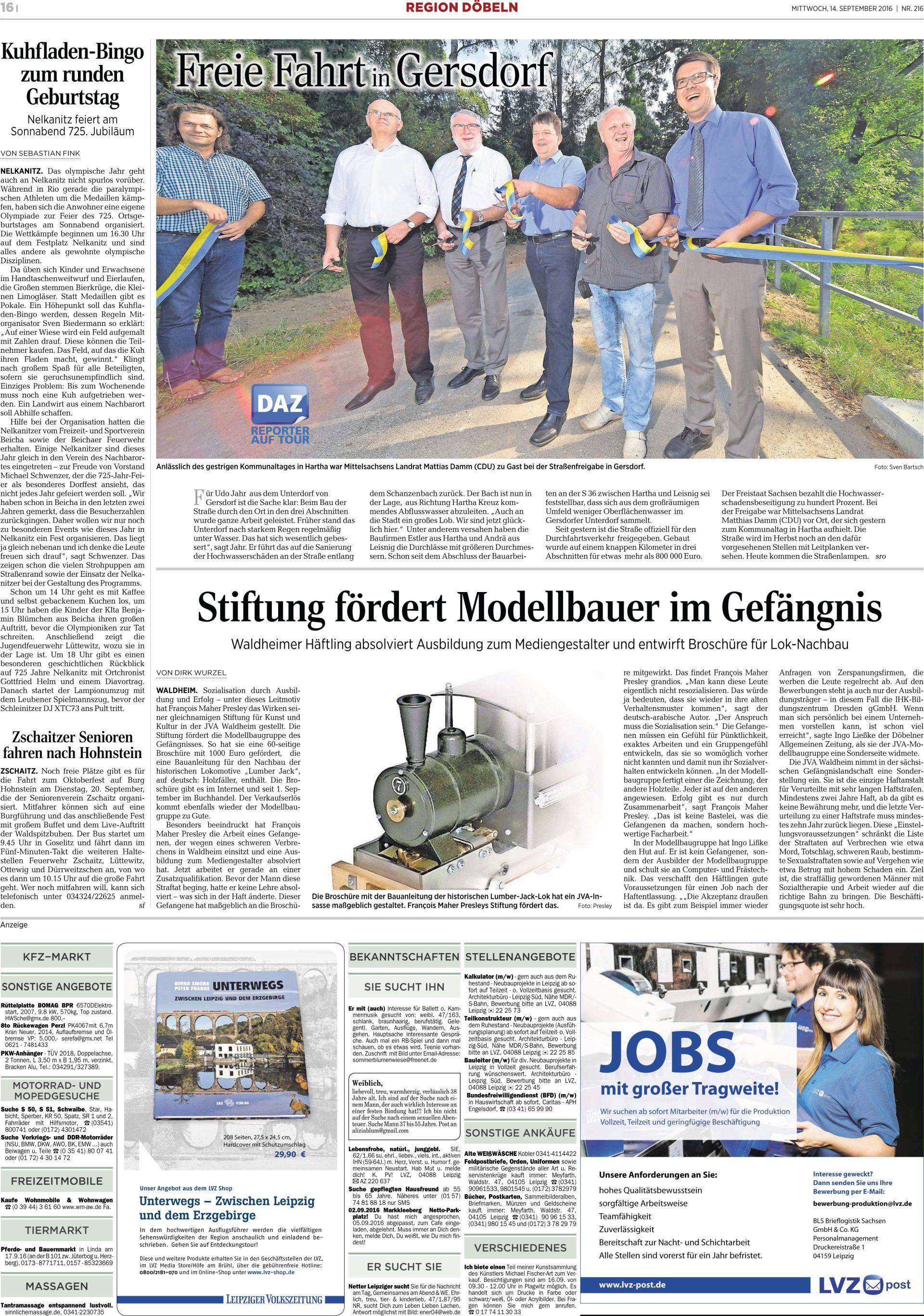 Meine Bewunderung für Sie und auch Herrn Ließke für Ihr Engagement, aber natürlich auch für "Nummer 1", den wir ja vor ein paar Jahren im Rathaus Waldheim kennenlernen durften.