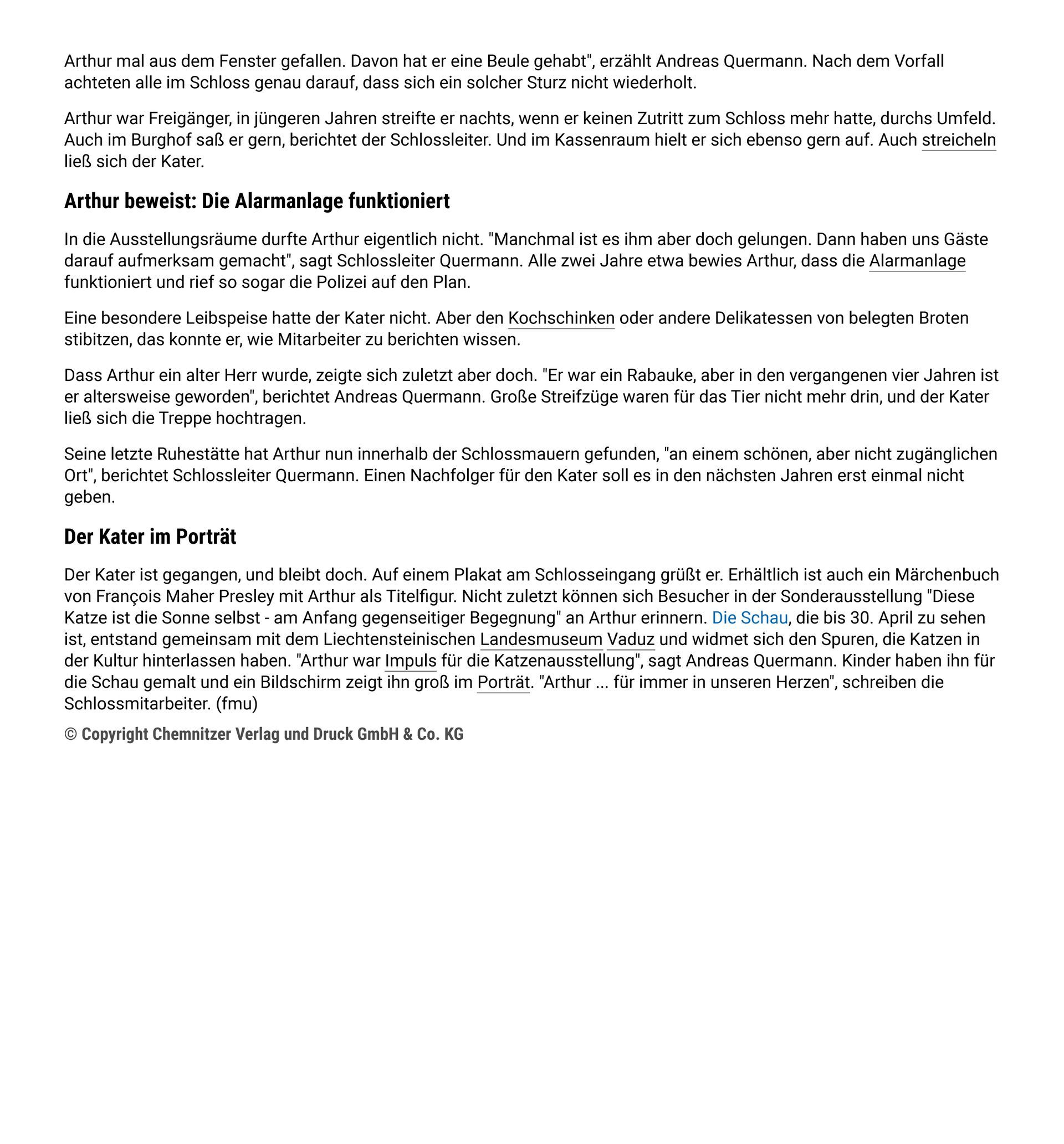 Kater Arthur von Schloss Rochsburg
